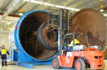 CURING or VULCANISATION can also be carried out in different ways. The hot cure process uses an individual curing matrix (known as a mould), similar to that used to cure new tyres. In the pre-cure process, however, the tyres are cured in an autoclave (curing chamber). Car tyres are retreaded exclusively using the hot cure process. Commercial vehicle tyres can be retreaded using either process. During the curing process the physical properties of the tread change and the newly applied material forms a permanent chemical bond with the existing casing.